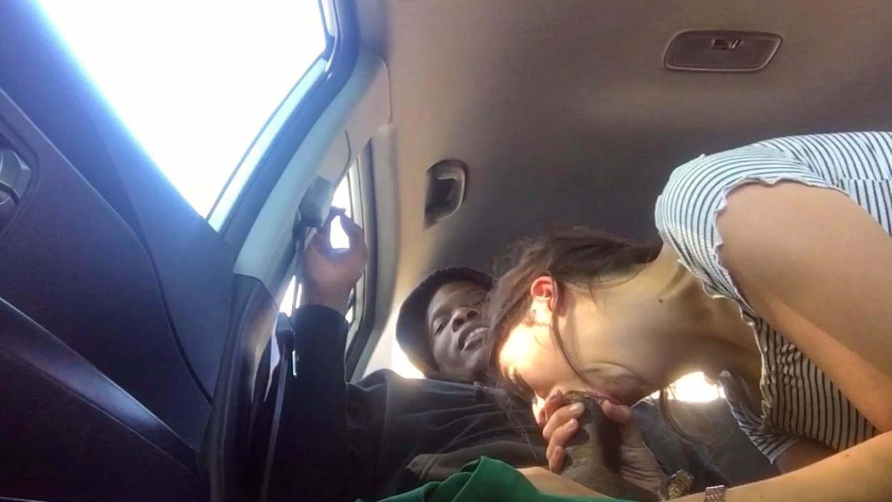 Hot interracial blowjob outdoors