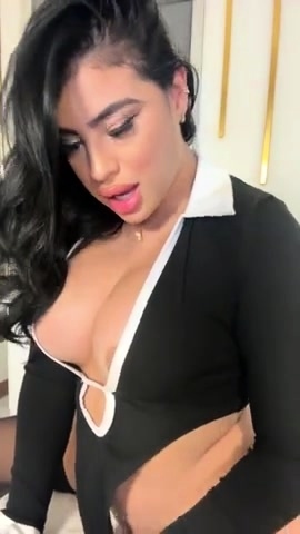 Busty curly brunette with big boobs fucks on couch