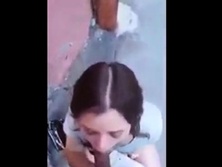 Slutty college chick sucks cock balls deep in alley
