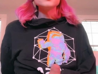Tranny with big tits tugs on her big cock