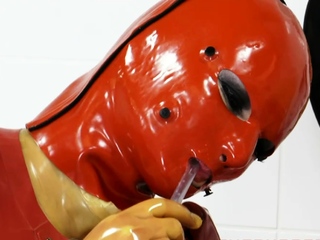 Latex slut solo anal masturbation