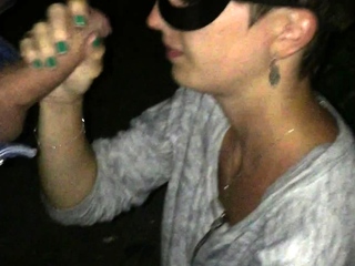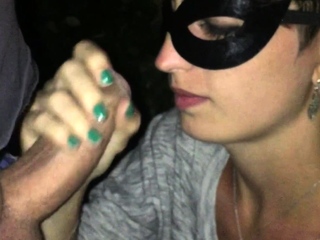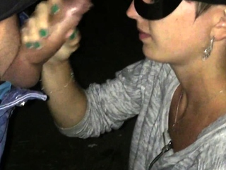 Brunette handjob amateur pulls for cum with lucky guy