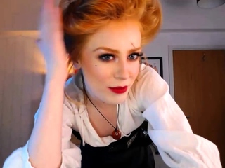 Helpless guy has a provoking redhead in black boots biting his shaft