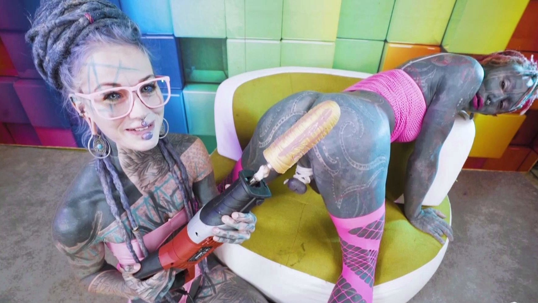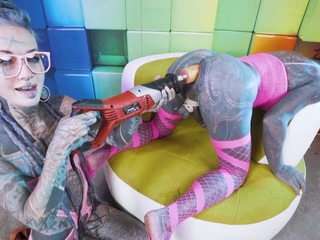 Anuskatzz uses a jackhammer toy on Lily Lu's ass