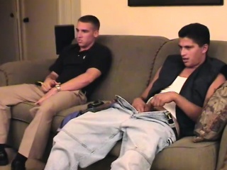 Musclular stud lies back to give his stiff prick a two-handed pumping