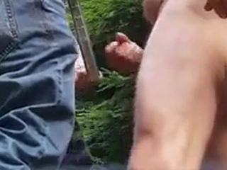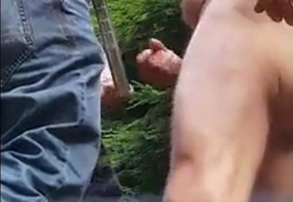 Three Daddies Stroking in the Woods