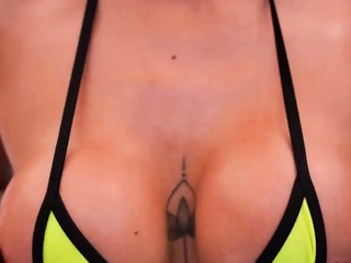 Busty micro bikini Latina gags in pool