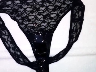 Huge load of cum on my sister's dirty panties (18 spurts)
