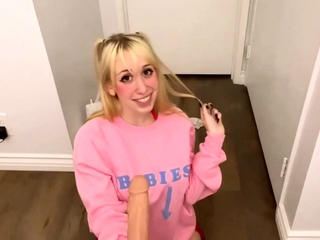 American amateur blonde has British blowjob casting