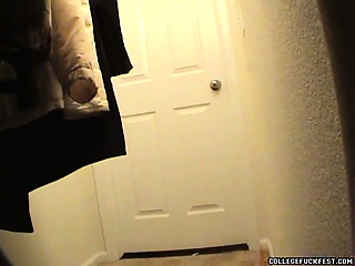 Horny college skank gets down to suck a fat dick inside of a closet