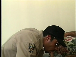 Two dirty cops get their stiff pricks swallowed by three bad boys