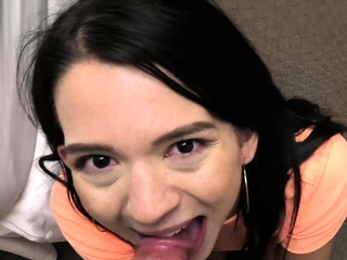 good lookin brunette needs a hand to swallow jizz