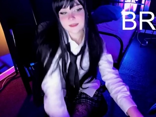 Small titted girl in stockings fucks herself with a dildo