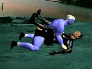 3D characters get big peckers to blow, jerk off and use their feet on