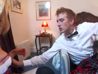 Mature brunette Tina toys in stockings