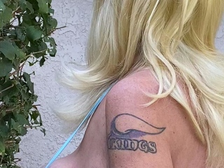 Blonde is flashing her big boobs in the outdoors