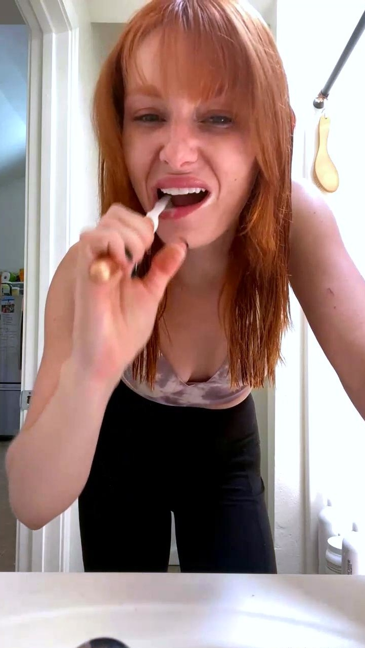 Amateur redhead masturbates then gives a blowjob