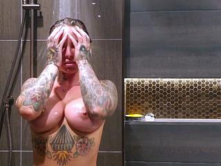 Awesome Big Boobs Blonde Masturbates In The Shower