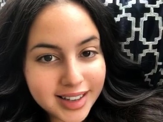 Busty curly brunette with big boobs fucks on couch