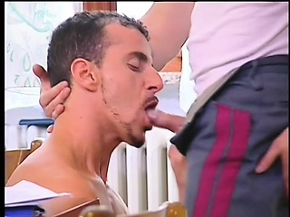 Two black studs lie on the bed and take turns sucking each other's shafts