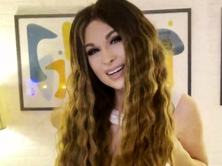 Shemales in lingerie dominate a tame man with their big members