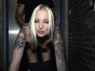 Blonde cutie gets on top of a hard prick and takes it deep in her ass